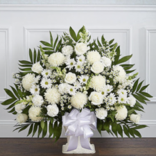 Lilies, gladiolus, carnations and roses make this basket a standout piece.