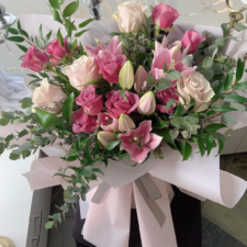Wrapped bouquet of fresh in-seasonal blooms hand picked by florist.